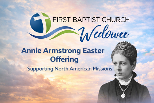 Another way you can take part in the Easter season at First Baptist Church Wedowee is by giving to the Annie Armstrong Easter Offering (AAEO). This is the primary way Southern Baptists fund missions in North America. One hundred percent of gifts given to AAEO go to the field to support missionary families serving across the United States and Canada. You can give in the following ways: